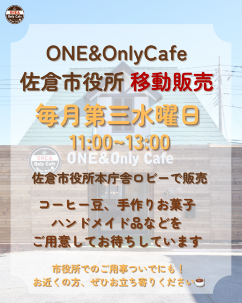 佐倉市役所で毎月第三水曜日にコーヒー豆やハンドメイド雑貨、自家製のお菓子などの移動販売を行っています。
